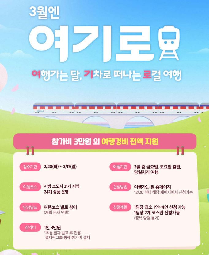 3월엔 여기로 여행경비 지원 기차여행