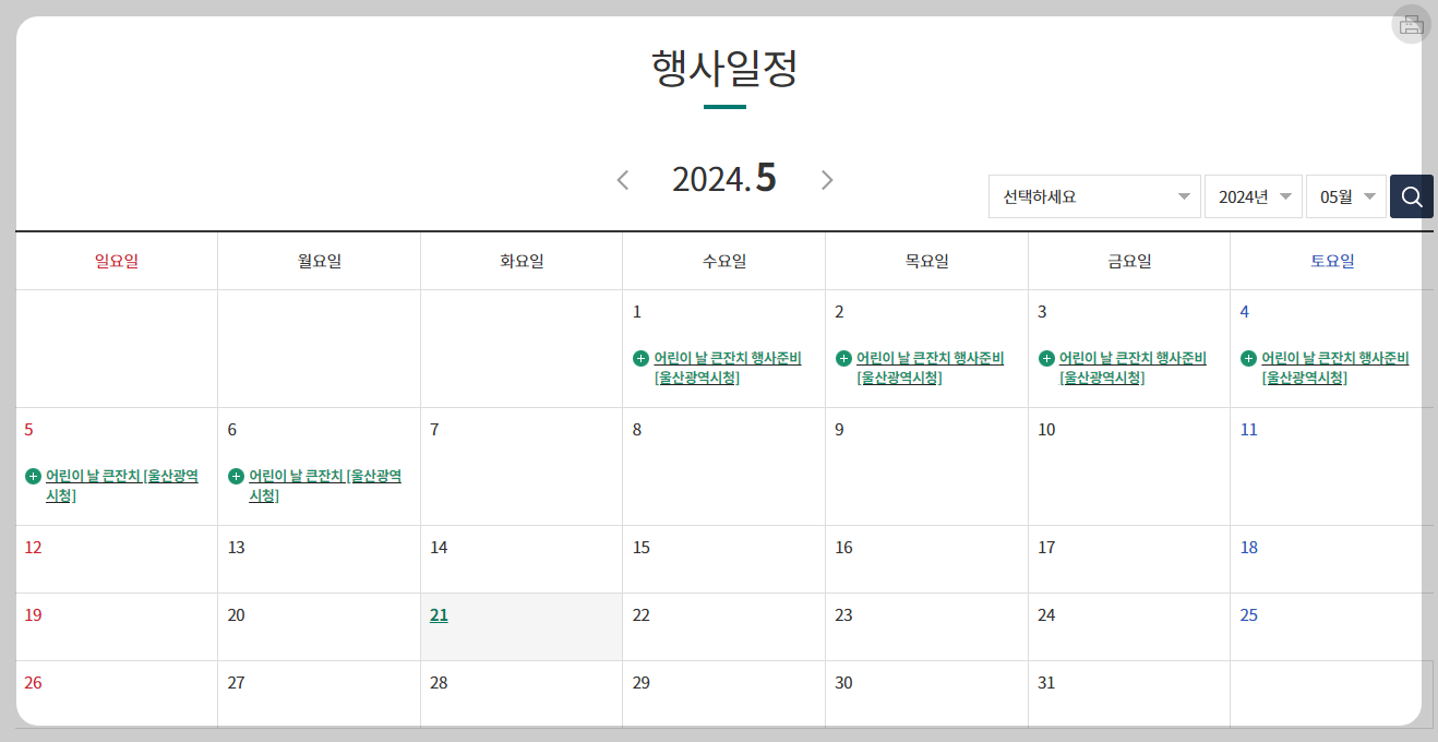 울산대공원 행사일정을 알려드립니다. 아래 달력에서 대공원 행사일정을 확인해 보세요.