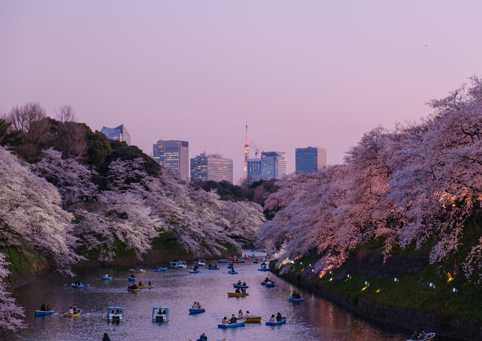지요다 벚꽃축제는 일본 도쿄의 황궁, 고쿄 바로 북쪽에 위치한 지도리가후치 녹음길에서 열리는데요, 이곳은 도심 속의 조용한 산책로로 유명합니다. 봄이 찾아오면, 약 700미터 길이의 이 산책로는 환상적인 벚꽃 터널로 변신합니다. 매년 3월 하순부터 4월 초순까지 열리는 이 축제는 약 260그루의 왕벚나무와 오시마벚나무가 해질 무렵 조명으로 아름답게 빛나며, 지도리가후치 보트장은 축제 기간 동안 평소보다 늦은 시간까지 영업해 방문객들이 물 위에서도 이 환상적인 벚꽃을 감상할 수 있게 합니다. 또한, 인근 점포와 지역 단체들은 벚꽃을 테마로 한 다양한 이벤트를 개최해 봄 축제의 분위기를 한층 더 신명 나게 만듭니다. 지요다 벚꽃축제는 일본 전국에서도 유명한 벚꽃 명소인데, 고쿄 근처의 지도리가후치 해자 주변 산책길에서 열립니다. 이 기간 동안, 방문객들은 야간에도 특별 영업하는 구영 지도리가후치 보트장을 이용해 수면 위에서 환상적인 밤 벚꽃 놀이를 즐길 수 있습니다.
